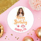 Floral Flowers Happy Birthday Handlettering Photo Classic Round Sticker