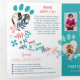 We've designed this beautiful pet-themed tri-fold brochure. The brochure features our beautiful floral and foliage pet pattern and paw print photo frames for you to add your own images. The pattern incorporates stylised dog bones, pet paw prints, and floral and foliage elements that are beautifully incorporated into this professional pet theme tri-fold brochure. All of the text and headers are fully customisable to suit your needs. On the back of the brochure, you can add your business map location as well as move the map pointer to pinpoint your location on the map. All illustrations contained in our pet floral and foliage business trifold brochure are hand-drawn original artwork by Moodthology.