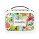 Whimsical flower design in pinks, green, yellow, blue and black with a funky nameplate. Easily customised