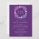 Floral frame and gold confetti purple wedding invitation