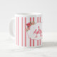 Cute floral frame and white and pink vertical geometric stripes pattern. Custom monogram