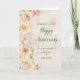 Happy wedding anniversary card for friend and his wife with elegant pastel watercolor flowers and spring greenery and a rustic wood pattern.