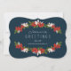 This corporate design features a navy blue background with traditional red, green and white holiday florals. The backside of this design allows for you to include your company logo as well as a custom message to your customers!