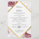 Elegant floral wedding theme featuring a blush pink rose flowers with a gold effect geometric frame. From "Modern Floral and Geometric" collection, this gorgeous and sophisticated layout shows your wedding details in a stylish script and modern typography with a rich bouquet on a white background.