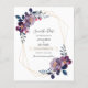 Cute, modern, trendy floral rustic save the date budget card you can easily customise by clicking the "Personalise" button. Features gold foil geometric frame dusty blue purple flowers with script text
