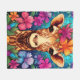Floral Giraffe Portrait-9322 Fleece Blanket