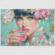 Add a touch of sultry sophistication to your next DIY masterpiece with this decoupage tissue paper featuring a mysterious dark-haired beauty sipping a soft pink cocktail. Dressed in spring florals with matching hot pink lips and nails, she’s elegance and edge in perfect balance. Ideal for chic gift wrap, bar tray styling, or upscale decoupage art projects that deserve a pop of floral glamour.