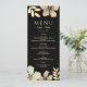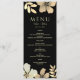 Modern, elegant, chic, black wedding menu with watercolor gold flowers.