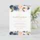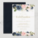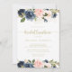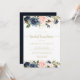 This floral gold bridal luncheon bridal shower invitation is perfect for a rustic wedding shower. The design features beautiful hand-painted dark blue, blue, navy, pink, blush, gold flowers and green foliage.