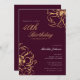 Floral Gold Burgundy 40th Birthday Invitation