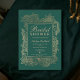 A modern, pretty chic and elegant faux gold hand drawn floral with faux gold elegant frame bridal shower party invitation on a hand painted emerald green background