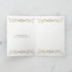 Elegant gold and silver tones floral lace border over white background, customisable template. Elegant script typography.