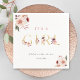 This baby shower napkin features watercolor flower bouquets of dahlia, garden rose, and peony in blush pink, burgundy red, and fall leaves with gold floral letters. For more advanced customisation of this design, please click the BLUE DESIGN TOOL BUTTON above. Matching items are also available.