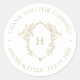 Elegant Floral Crest Wedding Thank You Stickers. Monogrammed initial framed by elegant hand illustrated vintage crest in gold, simple but sophisticated style. Perfect choice for modern, classic, simple formal weddings.