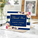 Floral Gold Navy Blue Stripes Wedding Thank You Card