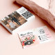 Floral gold pink Photography photo logo qr code featuring a black vintage watercolor camera, orange and red floral watercolor, gold glitter confetti on abstract pink watercolor brushstroke. With a modern script brush font, add your logo , branding, social media, portfolio photo and qr code. Perfect business card for wedding photographers and other events.