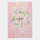 Floral Gold Script Monogram Pink Geode Agate Tea Towel