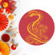 Elevate your Year of the Snake festivities with this striking round sticker, showcasing a radiant golden serpent adorned in delicate floral patterns. Set against a vivid red background, the design seamlessly blends traditional charm with a contemporary twist. Perfect for adding a festive flourish to envelopes, gifts, or party favours, it embodies themes of prosperity and good fortune. The ornate details of the snake’s body reflect symbolic warmth and hope for the new year, making this sticker a memorable addition to any celebration.
