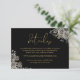 This elegant black and gold floral roses gothic wedding details enclosure card can be personalised with your information in chic typography and your QR code on the reverse. Designed by Thisisnotme©