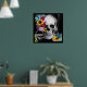 Floral gothic skull with paint splatters poster