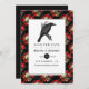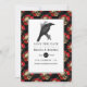 Crimson red gothic wedding save the date card featuring a raven and a skull rose pattern.