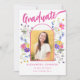 Floral Graduate Photo Pink Script Graduation Party Invitation