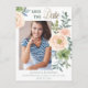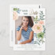 Elegant modern script high school or college graduation announcement photo postcard with blush pink watercolor flowers and greenery. Personalise with your photo and text.