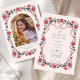 Elegant floral graduation party invitation featuring a romantic botanical frame, soft pink tones, and refined typography. Perfect for garden, spring, and feminine graduation celebrations, this design follows trending floral, vintage, and romantic invitation styles. Easily personalize for a timeless and stylish graduation party. Original artwork by Caroline Bonne Muller.