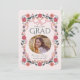 Beautiful floral graduation photo announcement featuring a delicate botanical frame, soft pink tones, and elegant typography. Perfect for a feminine and stylish graduation reveal, this design follows trending floral, garden, and romantic graduation announcement styles. Personalize with your photo for a timeless keepsake. Original artwork by Caroline Bonne Muller.