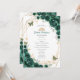 Emerald green, gold and white Quinceanera celebration Order of Events Program. Features, script font, gold butterflies, watercolor green roses and tiara. Perfect for an elegant princess style glam celebration. Personalize with your own details. Printed Zazzle card or instant download digital printable template.