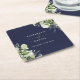 Floral Greenery Elegant Navy Blue Wedding Square Paper Coaster
