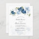 Customise this bridal shower budget invitation card by clicking the "Personalise" button above. The card features a modern elegant chic dusty blue flowers with white, light blue, and olive green bloom.