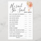 This game was fun and easy to play! Best part was that you can customize the questions based on the bride! Even thought the colors were black and white, it is clean, crisp and very readable.