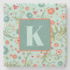 Floral Heart Pattern Pretty Custom Initial Stone Coaster