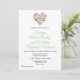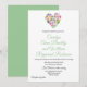 Pretty wedding invitation done in white, with graphics of a watercolor flower heart, at the top. The back is done in a solid green. Personalise all the custom text fields for your wedding. Matching products are available.