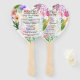 Pretty wedding program fan done in a colourful watercolor flower heart. Personalise the text, on both sides of the fan, for your wedding day.