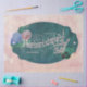 Vintage flowers, bees, teacup, and label collaged against a pink watercolor background.
