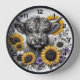 Floral Highland Cow Clock