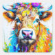 Floral Highland Cow Square Sticker