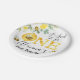 Sweet bumble or honey bee themed first birthday party paper plate for a little girl featuring a mostly yellow floral arrangements and four cute bumble bees. Great for a bee themed first birthday party.