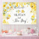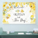 Complete your child's next birthday party with this cute honey bees floral welcome backdrop banner wall sign! Featuring adorable hand-drawn bumblebees, sweet honeycomb, and pretty yellow and white floral. Great for other ages as well! Matching items available in store! (c) The Happy Cat Studio.