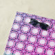 A geometric pattern with a repeating design covers the entire space, featuring a blend of honeycomb-like and floral elements. Various shades of purple, pink, and blue create a vintage or retro vibe to the pattern.