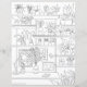 Modern black and white Floral house plants decor workspace with flowers and leaves illustration, perfect stationery that you can use as colouring page on one side.