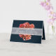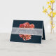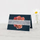 Beautiful bouquet of orange-pink Hydrangea flowers against a navy-coloured background. The flowers surround the birthday greeting text which uses an attractive script calligraphy font against a white translucent sash. The flowers cover the front of this card which can be used as a thank you card, a birthday card, or any other card of your choice. Personalise it with your text and/or pictures to make it one-of-a-kind!