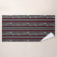 This design features black and white floral icons, maroon and black stripes, on a grey background.