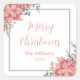 Floral illustration Christmas sticker personalised with the family name and year. Design in pink, green, and grey colours for the Holidays.