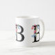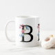 A personalised coffee mug with the letter "B" monogram, featuring decorative watercolor floral and foliage illustrations. Easily customise it with your name or create a unique gift for your loved ones.