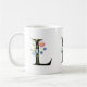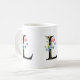 A personalised coffee mug with the letter "L" monogram, featuring decorative watercolor floral and foliage illustrations. Easily customise it with your name or create a unique gift for your loved ones.