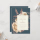 This elegant wedding invitation features a lush, romantic floral bouquet in ivory with rose gold faux foil and glitter foliage on a dark teal background. Customise the rose pink text in stylish fonts on an ivory rectangle. The reverse side provides space for wedding details on a solid teal background, along with a QR code guests can scan to visit your website and RSVP, which saves the cost of printing and mailing separate RSVP cards.