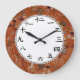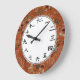 Japanese or Chinese Number Clock with vintage nature art depicting a muted orangey red floral pattern with flowers in a flowery design. Pretty flower themed traditional art from Japan with kanji symbols for the numbers 1-12 in Japanese or Mandarin or Cantonese, as they are the same I believe.